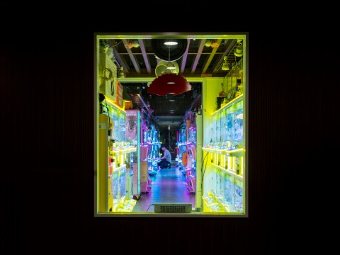2024年香港晚上,寂靜的畸零暗角,一部夾公仔機發亮得刺眼,昭告夜仍然繽紛。