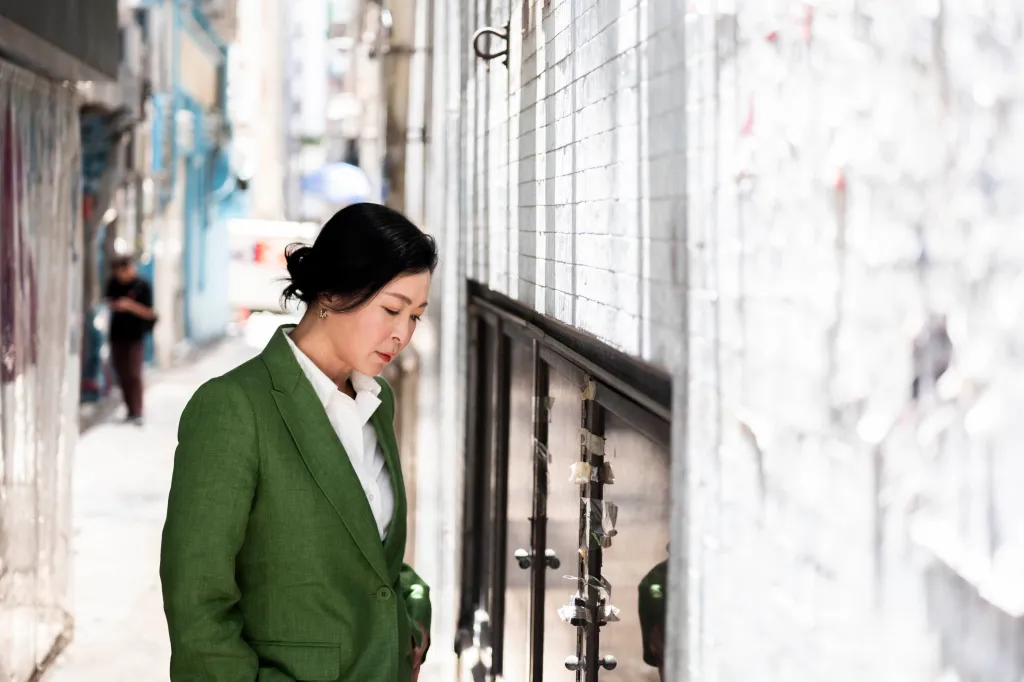 《完美證供》改編自澳洲劇作家 Suzie Miller 的《Prima Facie》,原著早已奪得多個國際戲劇大獎,獨挑大樑的演出難度更不用多說,是公認的當代劇壇 master piece。不同的是,《不赦之罪》屬兩位年輕導演林善和譚善揚的首部劇情長片,是一部新手上路之作。蘇玉華卻動了心,她解釋道:「最初是監製(廖婉虹)找我,問我有沒有興趣,我當然是問,有沒有劇本看?其實什麼都不用說,看完劇本就最清楚了,因為有劇本我就知道自己會接還是不會接。」