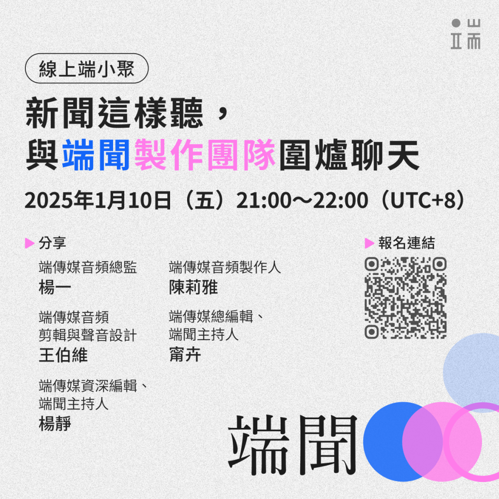 - 楊靜,端傳媒資深編輯、端聞主持人
