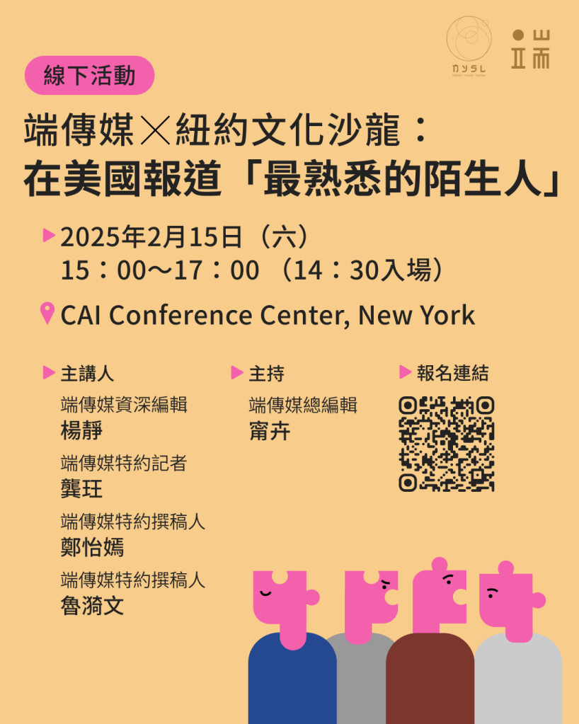2月15日,端傳媒將與紐約文化沙龍合作舉辦一次紐約的線下端小聚,歡迎你報名參加!