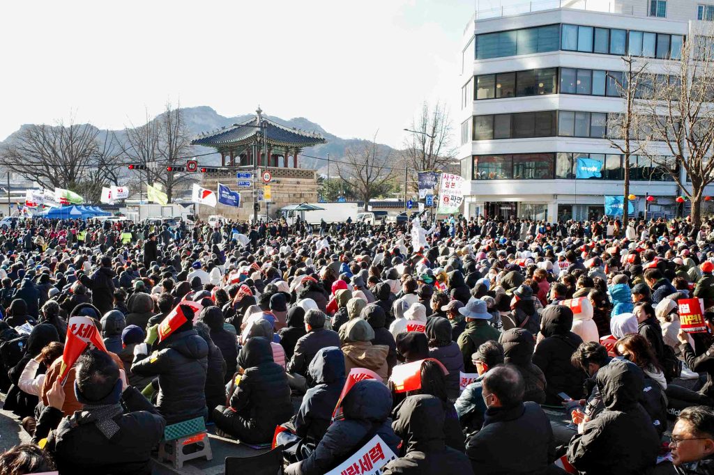 事实上,在弹劾尹锡悦的集会现场,隔著警队的另一边,便是支持尹锡悦的示威者。他们多来自保守教会,支持特朗普,他们同时举著美国国旗与韩国国旗,喊著:“Make Korea Great Again!”他们喊“Stop the Steal!”认为,国会被在野党把持是因中国的渗透,甚至女权主义者、酷儿群体、反对尹锡悦的人,也是来自中国势力。