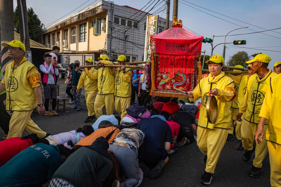 2025年5月8日,彰化,紧随白沙屯妈祖的信众。摄:唐佐欣/端传媒