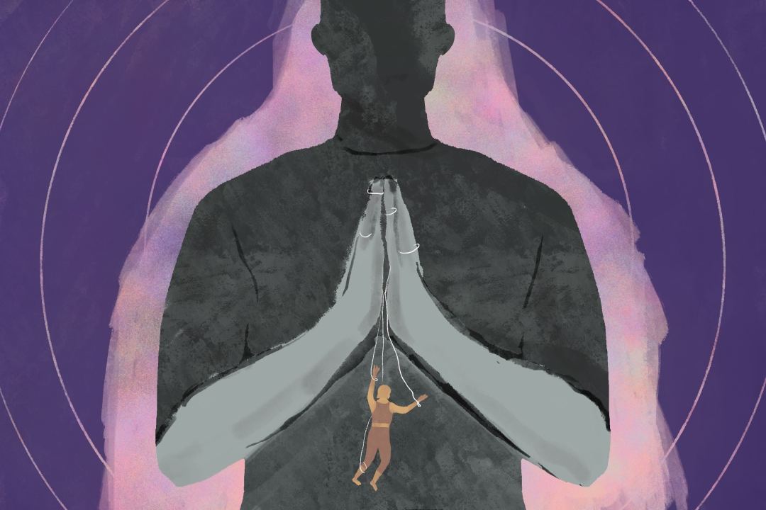昕昕強忍著噁心照做,很快,她便解離了,感到震驚又害怕,幾乎快無法呼吸,非常想離開,但又愣在原地。一面,是純粹的、超越一切的精神交流。一面,是身體的侵犯。極度割裂的兩者之間,她不知該如何理解這一切。她必須做出決定,但創傷反應讓她只是僵住了。