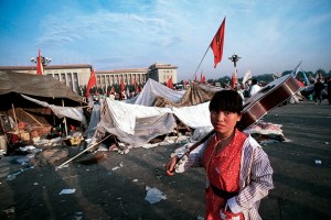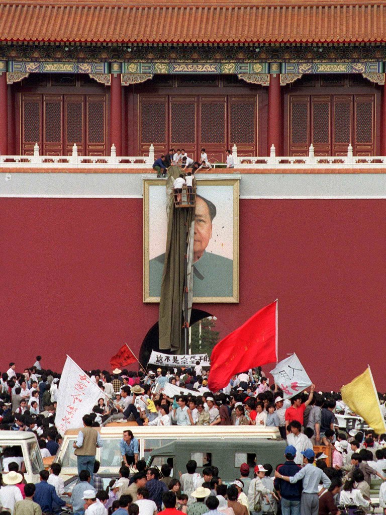 八九年電視上的天安門廣場,她已經見過一次民主女神像被解放軍碾碎帶走,如今歷史重演:「我還有什麼同大家講呢?我連民女都保不住……」她在講台上不停跟台下道歉。