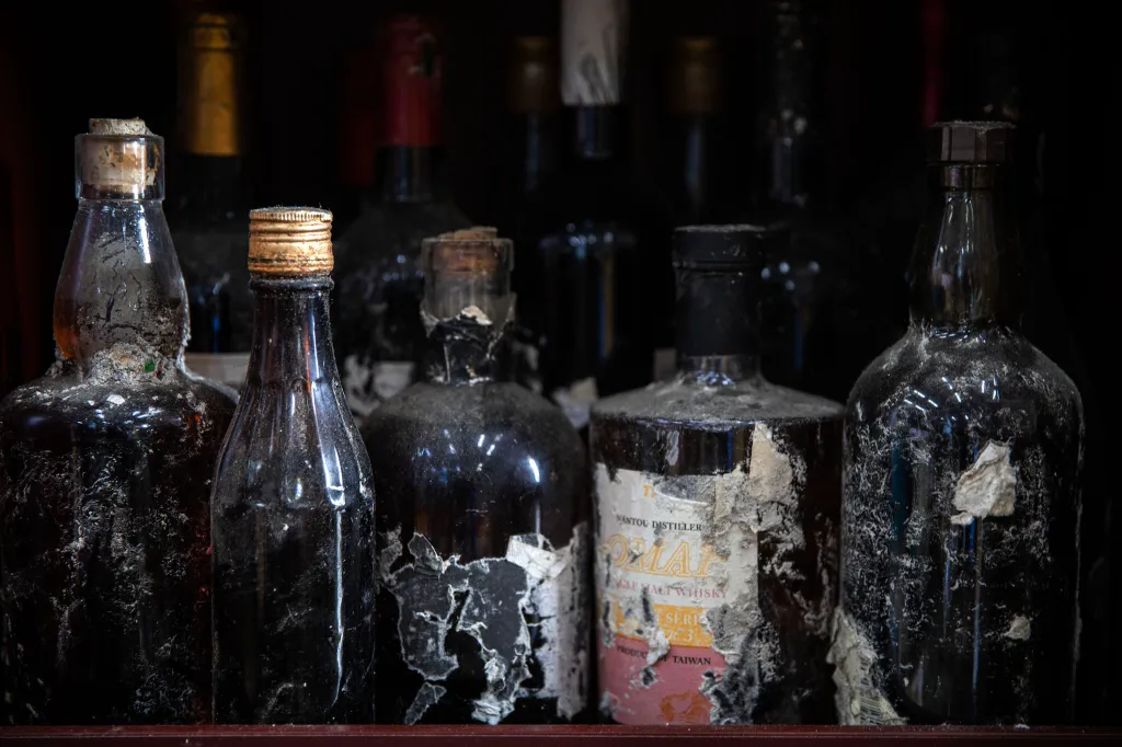 三天后,拆除作业在即,他曾请求县府让他抢救部分财物但未获许可。高耸大楼不久瞬间夷为平地,新的柏油也铺上大楼所在的街口,连同阿亿的酒行封存地底。小店残存的记忆,如今只有震后几支遗落四方、标签残破不堪的酒瓶留作证明,加上他仅是租户,对于一楼灾损几乎求偿无门,血本无归。