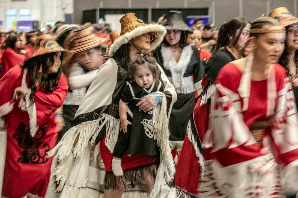 几乎每位新移民都曾被善意提醒:市中心东端(Downtown Eastside)能不去便不去,因为那是无家可归者与成瘾者的聚集地,许多是原住民。这不全然是偏见。根据 Lu’ma Native Housing Society 等组织于 2023 年在大温哥华地区做的调查,无家者中有多达 33% 自我认定为原住民,而原住民仅占当地总人口约 2%。在这样的现实下,无家可归、成瘾与原住民三重身影,在许多人心中逐渐交叠。然而,Hoobiyee 新年庆典展现了截然不同的面貌:歌舞、图腾与长老的祈福,共同召唤族群记忆与文化尊严。