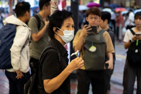 香港維園第六年沒有六四燭光,黑衣市民雨中持花及默坐悼念|Whatsnew